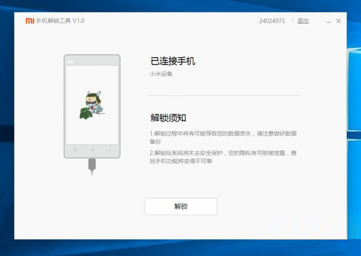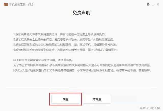 1.3->>双击miflash_unlock.exe,会打开工具。同意免责声明,然后登录你的小米账号。